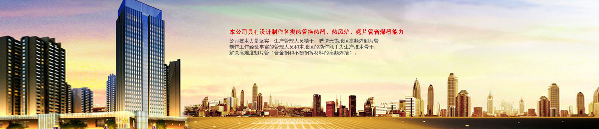 無錫市新寶紅換熱器有限公司 ???????無錫市新寶紅換熱器有限公司位于美麗的太湖之濱,是一家專業(yè)生產(chǎn)翅片管,翅片管換熱器,高頻焊螺旋翅片管,熱管式換熱器的廠家。